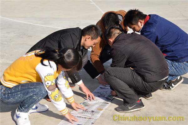 訓練從破冰和團隊建設開始。首先,培訓師通過案例和小游戲使大家了解拓展培訓的概念,并在短時間內打破溝通障礙,消除人與人之間的距離感。團隊建設中,大家分成三個團隊,各自選出隊長,隊長助理,并確定隊名、隊訓和隊歌。形成團隊自己的文化,使整個團隊初具核心向心力和凝聚力。
