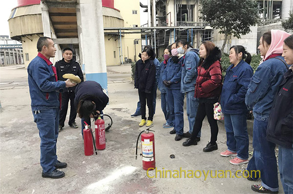 培訓過程中,李新斌詳細講解了消防安全的日常性、重要性和必要性,結合本車間的工作特點,認真分析當前的消防安全工作。李福良現場指導員工學習手提式滅火器和過濾式防毒面具的使用方法和注意事項。培訓以分批學習方式進行,每個員工在聽完講解后,進行現場實際操作,反復學習,直到掌握為止。