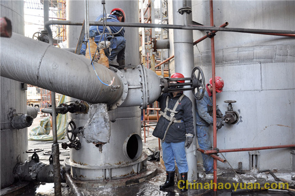 在幾天的檢修過程中,公司各級領導高度重視,公司常務副總經理凡殿才、副總經理張海生經常到現場指導檢修工作。碳化車間主任郭學法更是堅守在檢修一線,衣服已經看不到原來的顏色,眼里已熬得布滿了血絲。