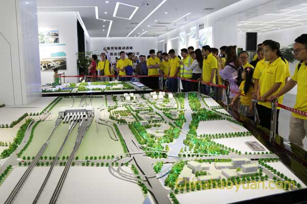 在二樓規劃展示區,布設了大量的展板及城市微雕模型,展示了阜陽市總體規劃以及各種專利,在阜陽市名企薈萃的版塊里,昊源化工的圖標如星光閃耀在醒目的位置,而阜陽煤基新材料產業園區更是開辟了專版對阜城人民進行展示,這讓在場的昊源青年倍感自豪和榮耀!大家情不自禁地紛紛在昊源圖標前合影留念……