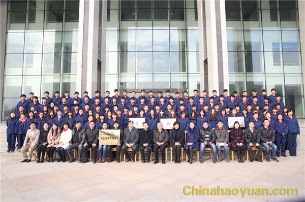 最后,昊源集團、安徽職業技術學院雙方代表、安徽職業技術學院昊源班學生代表在圖書館廣場合影留念。