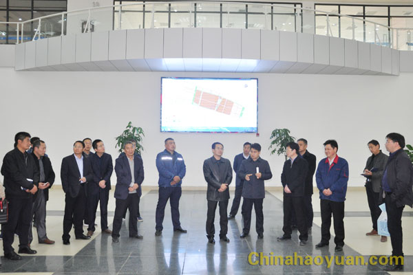 鄧真曉一行在凡殿才等公司領導陪同下,現場參觀了昊源集團阜陽煤基新材料產業園區一期項目裝置。在生產控制中心,凡殿才向鄧真曉匯報了一期項目規劃、建設及生產運行情況。