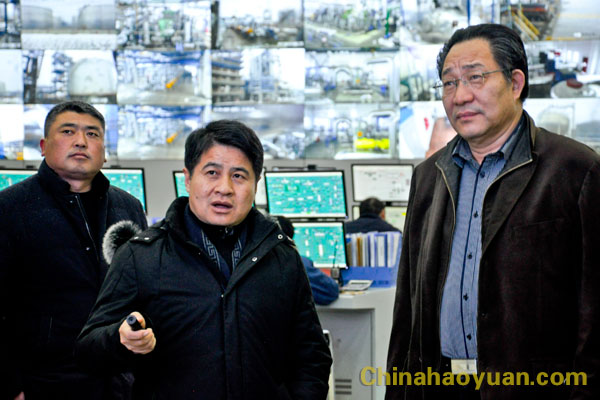 會后,副市長劉勁松、副區長劉小平及青島科技大學化工學院客人在公司黨委書記、董事長凡殿才,副總經理高明林等公司領導陪同下,實地參觀了昊源公司阜陽煤基新材料產業園區生產裝置,聽取凡殿才關于園區項目規劃、建設、生產運行情況匯報。