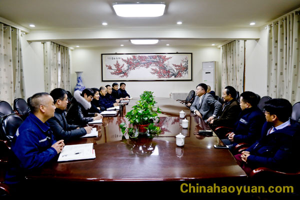 凡殿才向青島科技大學化工學院客人介紹了昊源公司發展歷程,公司目前生產、經營情況及發展規劃。在聽取青島科技大學化工學院客人關于該院學科研究介紹后,希望雙方進一步深入交流,在化工新產品方面開展校企合作,實現互利共贏。