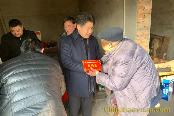 1月24日,公司黨委書記、董事長凡殿才在黨委副書記、副總經理楊捷、工會副主席戚偉陪同下,到界首市新馬集鎮老王寨村扶貧慰問。