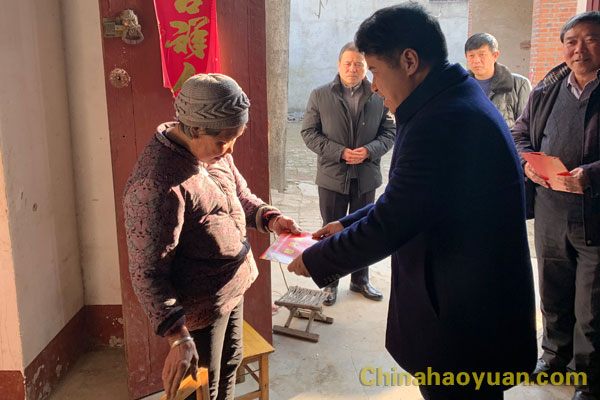 老王寨村第一書記、昊源集團扶貧干部毛永賢,老王寨村黨總支書記、村主任王亞遜,村黨總支副書記、副主任王慶海陪同慰問。