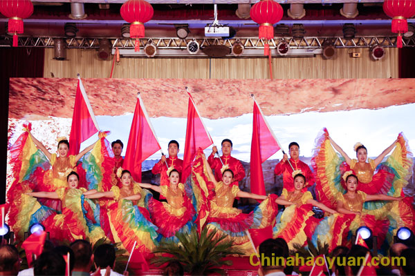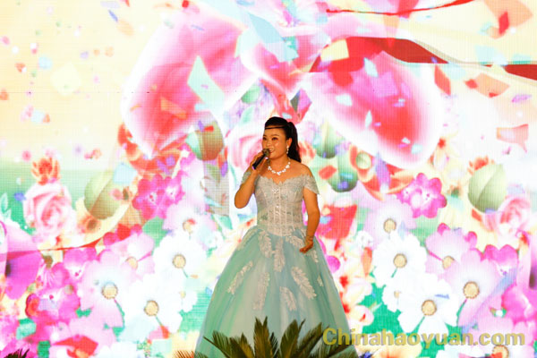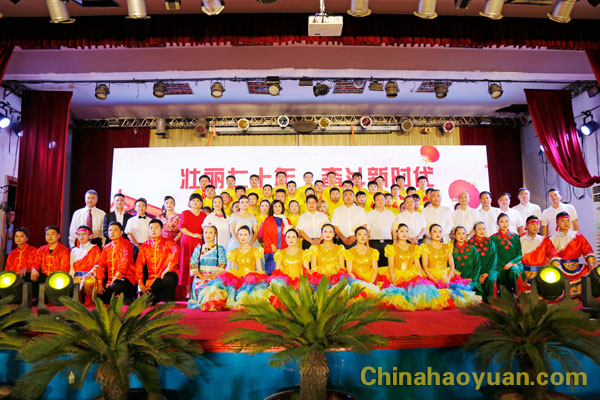 晚會結束,公司領導依次走上舞臺,向演員們表示問候,并與演員合影。