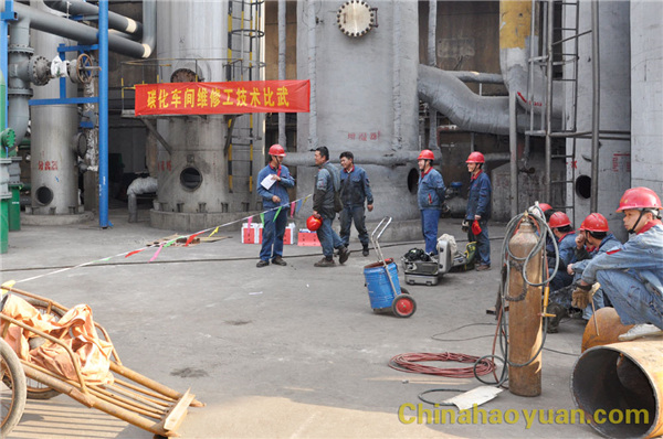 3月28日下午,碳化車間團(tuán)支部在2#脫碳現(xiàn)場(chǎng)舉行維修工技術(shù)比武活動(dòng)。