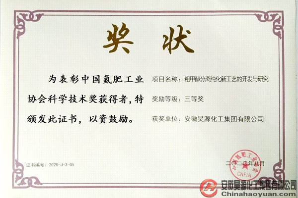 昊源公司在“2020年中國氮肥、甲醇技術大會”上喜獲多項獎項