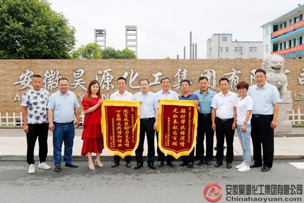 7月5日,界首市新馬集鎮(zhèn)黨委委員、老王寨村包點干部劉志強,老王寨村黨總支書記、主任王亞遜一行為昊源公司送來“脫貧攻堅助力見真情  心系群眾共譜和諧曲”、“駐村幫扶結(jié)深情  無私奉獻為百姓”兩面錦旗,對昊源公司在精準扶貧工作中為老王寨村村民辦實事、做好事、解難事表達誠摯謝意。公司黨委副書記、副總經(jīng)理楊捷,工會副主席楊波,公司原駐老王寨村扶貧干部毛永賢參加了授旗儀式,并就扶貧工作進行了座談交流。