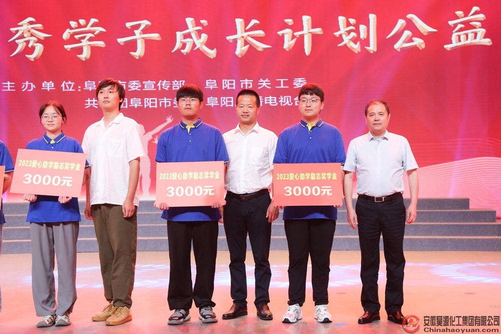 8月13日,由中共阜陽市委宣傳部、市關工委、市民政局、共青團阜陽市委、市婦聯、阜陽廣播電視臺共同主辦的“青春逢盛世 奮斗正當時,2023助力優秀學子成長計劃公益晚會”,在阜陽廣播電視臺演播大廳舉行。公司黨委副書記、副總經理楊捷代表昊源集團受邀出席晚會,并為優秀學子頒發勵志助學金。會上,安徽昊源化工集團有限公司被授予“愛心企業”光榮稱號。