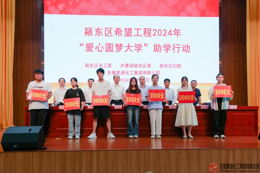 公司黨委書記、董事長凡殿才代表昊源公司向潁東區百名學子捐贈30萬元“愛心圓夢大學”助學金,幫助勵志學子順利走進大學、繼續深造,用知識改變命運。