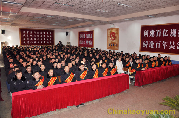 紫燕翻飛千里景,金猴攀越萬年枝。2016年2月4日,晴空萬里,風(fēng)和日麗,昊源公司2015年度工作總結(jié)暨先進(jìn)表彰大會(huì)在祥和、喜慶的氣氛中隆重召開。15時(shí),市政府副秘書長趙志賀、市經(jīng)信委主任岳華剛、潁東區(qū)區(qū)長張銀軍、市總工會(huì)副主席尹學(xué)君、市經(jīng)信委副主任高文軍,昊源公司黨委書記、董事長凡殿才,黨委副書記李繼忠,副總經(jīng)理?xiàng)罱荨⒏哂窭凇⑻飸褟V、高明林、張海生、李廣修,總經(jīng)理助理潘家成、王衛(wèi)峰、吳珍漢依次走上主席臺(tái)就座。公司副總經(jīng)理、工會(huì)主席高玉磊主持會(huì)議。