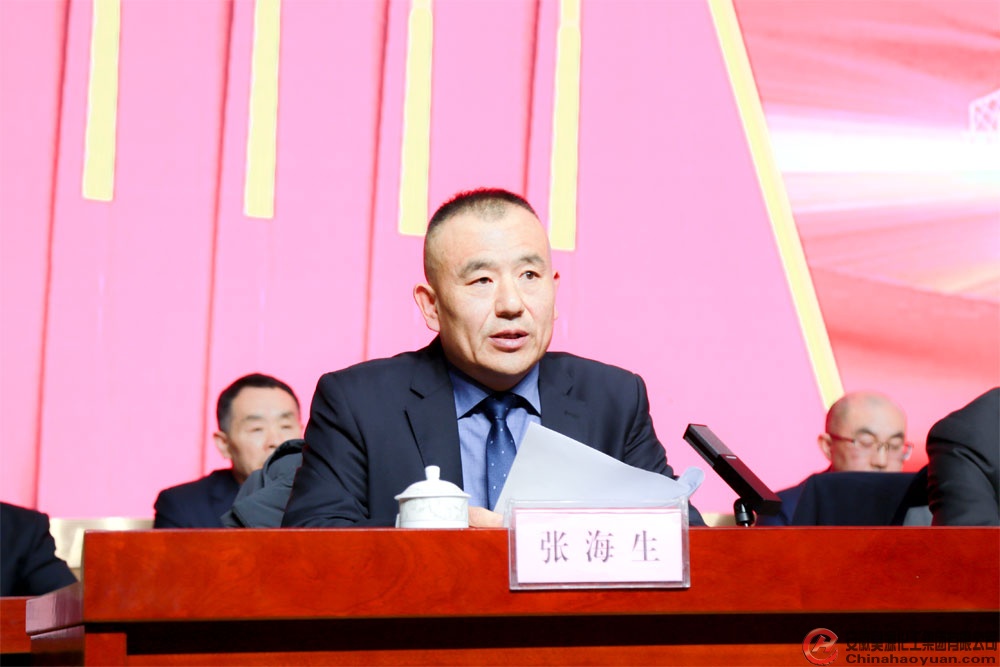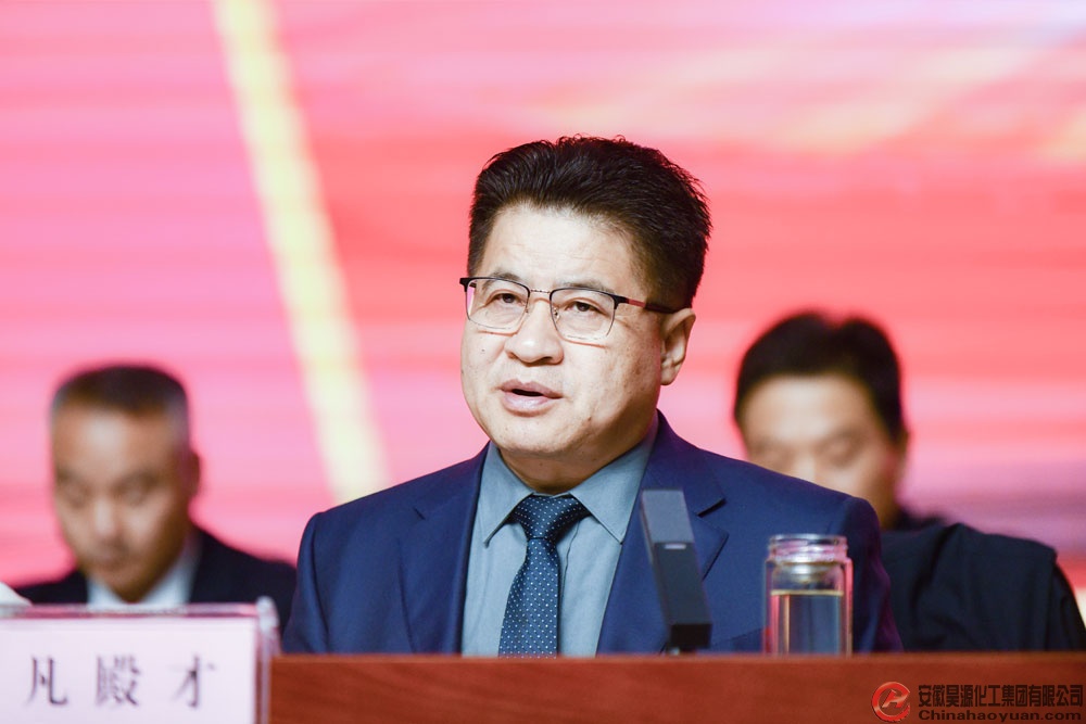 凡殿才董事長首先代表昊源公司黨政向一年來為公司發展做出積極貢獻的全體干部員工表示衷心感謝!向即將受到表彰的先進集體、先進個人等榮譽獲得者表示熱烈祝賀!