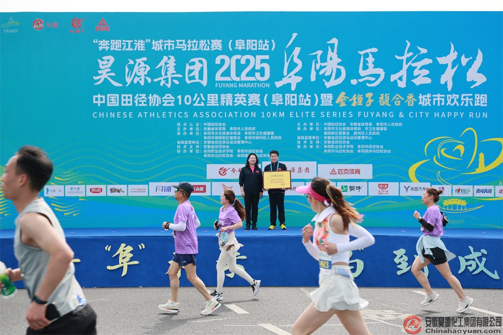 在企業授牌環節,市領導代表昊源集團2025阜陽馬拉松官方授予安徽昊源化工集團有限公司總冠名單位獎牌。