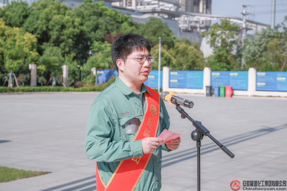 6月18日,昊源公司舉行升旗儀式,常務副總經理高明林主持升旗儀式。