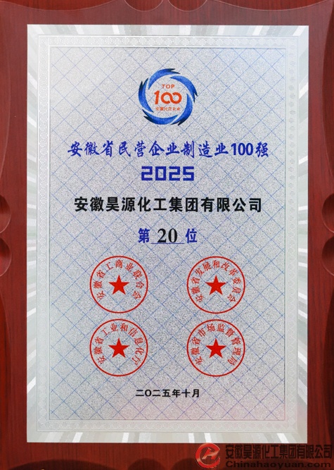 安徽昊源化工集團有限公司憑借突出業績與創新能力,位列2025安徽省民營企業營收百強第27位、民營企業制造業百強第20位、吸納就業百強第23位。