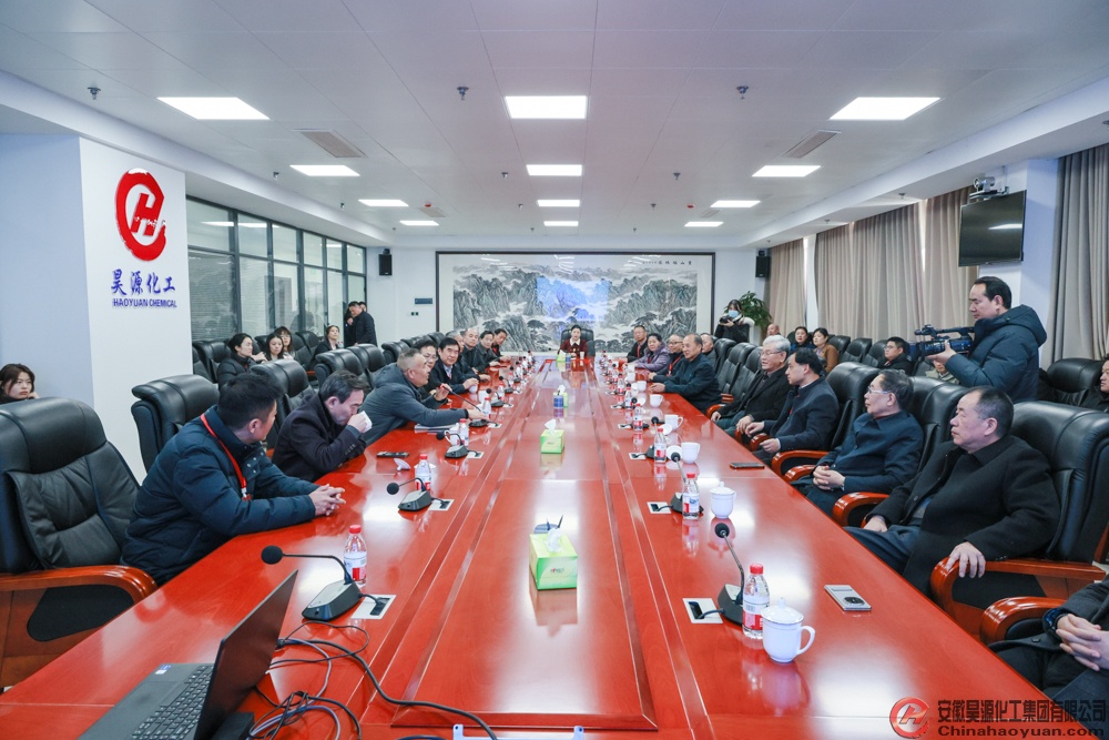 1月24日,在安徽省職業經理人協會年度常務理事會議期間,中共安徽省委原常委、原常務副省長、省職協原會長任海深同志率考察團蒞臨昊源公司調研指導。省職協會長、副會長及各常務理事,全省上市企業、大型企業,優秀企業董事長、總經理等約50名業界精英,共聚一堂,交流企業轉型發展經驗。昊源公司副總經理張海生陪同,并詳細介紹了昊源公司經營及發展情況。