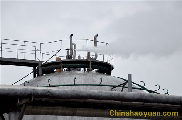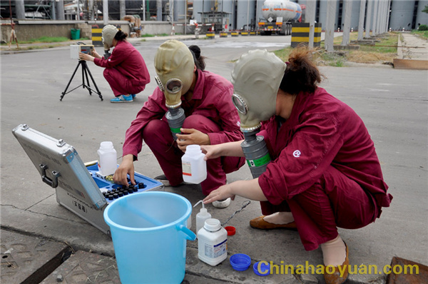 隨著演練開始口令下達,氨庫沖裝人員發現3#儲氨罐頂部漏氨,便立即向車間報告液氨泄露情況。隨后,車間快速向安全科及生產辦匯報,公司迅速啟動?;沸孤妒鹿蕦m棏鳖A案,并在聯合車間成立指揮部??傊笓]李超群在向聯合車間主任苗田生了解情況后,立即通知各救援隊緊急向指揮部集合。人員迅速集合到位,李超群當即下達救援命令。安全科人員緊急疏散下風口人群,保衛科在現場拉起隔離帶禁止無關人員進入,公司消防隊利用現場高壓水槍對泄露液氨進行吸收、壓制,防止氨氣進一步擴散。聯合車間主任苗田生收到總指揮下達的搶險任務后,立即安排兩名操作工及兩名維修工趕往球罐頂部,在水槍的噴射配合下,搶險隊員一鼓作氣沖向漏點迅速將泄漏點根部閥門關閉,泄露消除。環??迫藛T現場進行廢水及空氣檢測,并將檢測結束隨時報告指揮部。險情排除,環境檢測合格,隨即集合隊伍,總指揮李超群下達結束緊急狀態命令,并要求安全科調查本次泄露事故原因,做好警示教育,演練結束。
