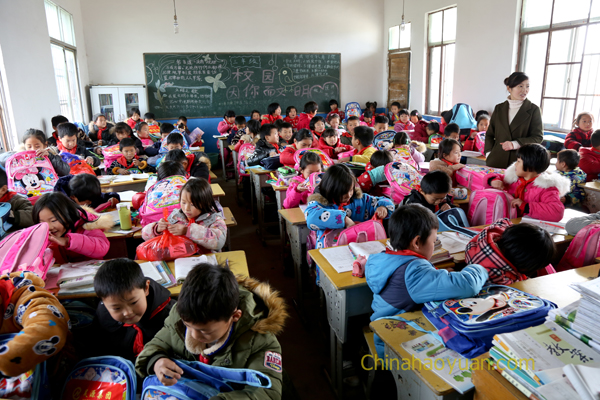 阜陽(yáng)是農(nóng)業(yè)大市,常年外出務(wù)工農(nóng)民超過(guò)300萬(wàn)。12月3日,在集團(tuán)公司董事長(zhǎng)總經(jīng)理凡殿才的帶領(lǐng)下, 昊源集團(tuán)青年志愿者們驅(qū)車一個(gè)多小時(shí),來(lái)到臨泉呂寨陳小寨村小學(xué)!一進(jìn)學(xué)校就感覺到了濃濃的校園氣息,一大群活潑可愛的小朋友們?cè)谛〔賵?chǎng)上打打鬧鬧,有跳繩,做操,跑步!昊源集團(tuán)青年志愿者服務(wù)隊(duì)為孩子們送去冬日暖陽(yáng),讓需要關(guān)愛和陪伴的留守兒童感受到全社會(huì)的愛心和溫暖。凡殿才親手將關(guān)愛書包發(fā)放到每個(gè)孩子的手中,并囑咐他們父母雖然不在身邊,但是關(guān)心愛護(hù)他們的人卻有很多。
