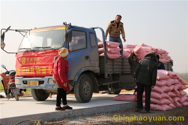 這次昊源公司為貧困老鄉共送去10.5噸尿素。