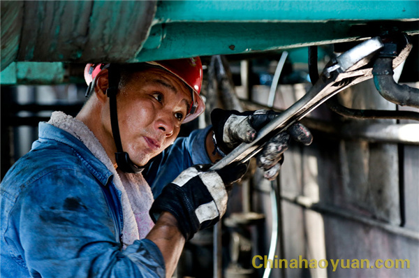 操作人員巡檢在炙熱的設備塔群中,雖然身上被烤得火辣辣的,但他們依然認真檢查著每一個控制點、每一臺機泵,測量著機泵溫度和振動,確保設備在高溫下健康、穩定運行。