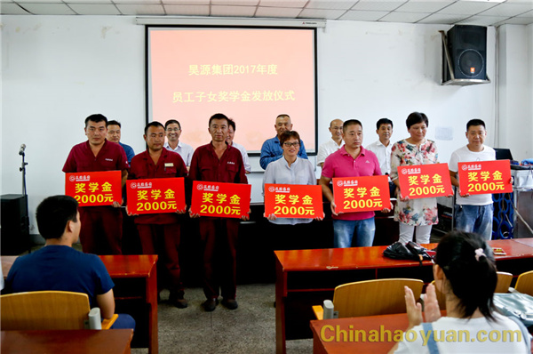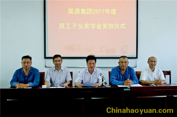 8月25日,“昊源集團(tuán)2017年度員工子女獎(jiǎng)學(xué)金發(fā)放儀式”在公司培訓(xùn)中心舉行。公司領(lǐng)導(dǎo)高玉磊、張海生、田懷廣、吳珍漢出席儀式,儀式由工會(huì)副主席戚偉主持。