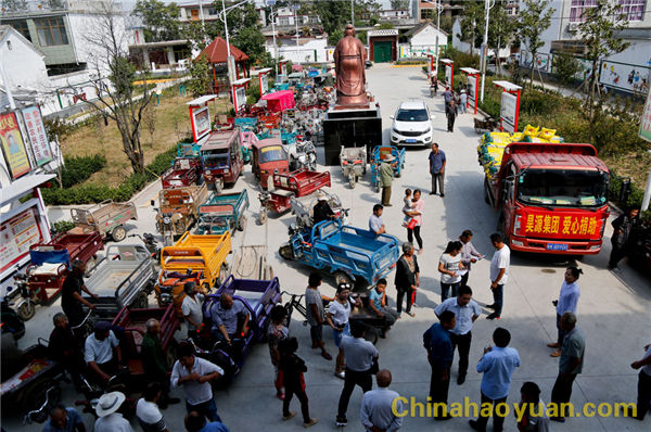 9月23日,昊源集團黨委副書記、副總經理高玉磊在界首昊源化工有限責任公司副董事長吳萬義、總經理王國濤的陪同下,到界首市新馬集鎮老王寨村,代表昊源集團將一車復合肥送到貧困村民手中,進行結對扶貧慰問。