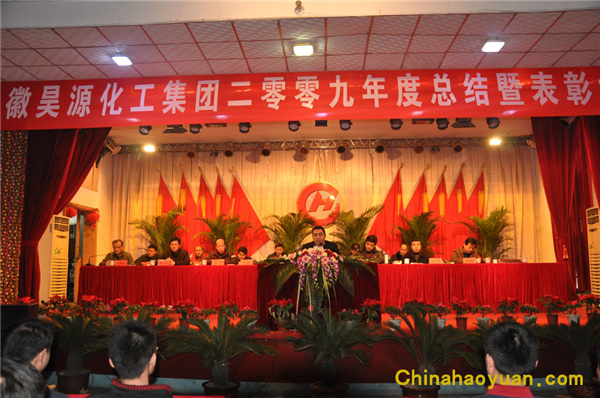 阜陽市經委副主任左會同、阜陽市化工協會會長李智、市總工會副主席陳華東等領導出席了總結表彰大會。大會由公司黨委副書記李繼忠主持,公司黨委書記、董事長饒金鐸作了題為“降成本、調結構、重創新、促轉型、為打造資源節約型環境友好型的百年昊源而奮斗”的報告。報告主要分為兩部分,一是對2009年的工作進行全面的總結。2009年是公司面對金融危機攻堅克難的一年,也是公司降成本、調結構、大干快上的一年。在這不平凡的一年中,祖國母親迎來了60華誕,讓我們看到了祖國60年來的繁榮昌盛和國防力量的日益強大。一年來,我國的經濟形勢也發生著深刻的變化。面對金融危機帶來的風險和機遇,公司黨委、董事會帶領全體員工,貫徹落實國家“保增長、保民生、促發展”的戰略部署,堅守“不減員、不降薪”的莊嚴承諾,同心同德,艱苦奮斗,通過深化管理、節能降耗和小改小革,企業保持了快速、健康、和諧發展的良好勢頭。二是對2010年工作進行了全面部署,明確提出了繼續貫徹執行“安全為天”的指導思想,以“12345”工作措施為主線,確保公司實現安全發展。就2010年的全國形勢而言,行業“洗牌”在即,市場競爭升級,我們要積極行動起來,在經營模式、業務模式、營銷推廣、成本管理上推陳出新,開創我們昊源的又一個“春天”。