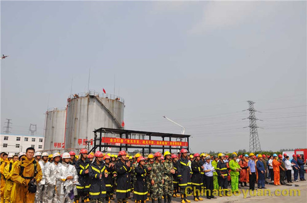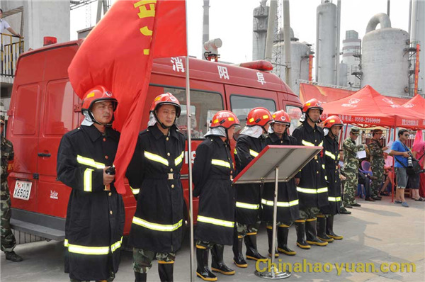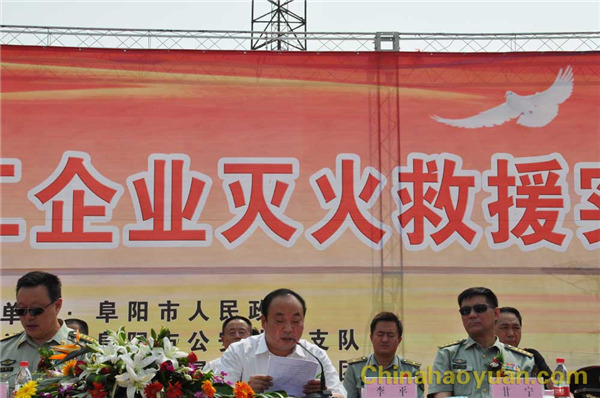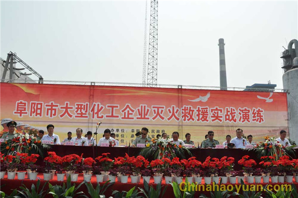 7月21日,由阜陽市人民政府主辦,武警阜陽市消防支隊(duì)承辦,安徽昊源化工集團(tuán)有限公司協(xié)辦的2011年阜陽市大型化工企業(yè)滅火救援實(shí)戰(zhàn)演練在我公司1號甲醇罐區(qū)隆重上演。