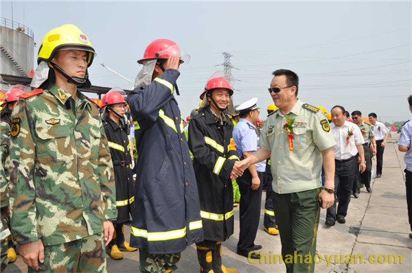 省公安消防總隊(duì)副總隊(duì)長劉德義, 市委常委、常務(wù)副市長李平,市委常委、政法委書記、公安局長許剛,集團(tuán)公司董事長鄭高潮等及市職有關(guān)部門和單位領(lǐng)導(dǎo)現(xiàn)場觀摩演習(xí)。