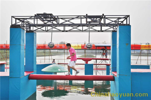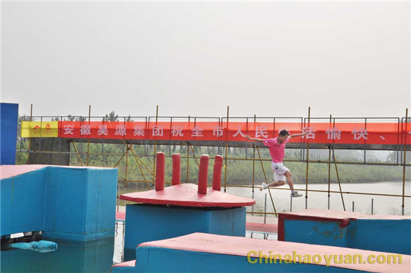 隨著現(xiàn)場(chǎng)沖關(guān)哨聲響起,尿素車(chē)間楊磊作為第一位沖關(guān)選手,如離弦之箭沖上 “水上傳送帶”,親身體驗(yàn)了 “水上漂”的感覺(jué)。在“忐忑搖擺錘”面前,他毫無(wú)忐忑之心,一溜煙地跑到“幸運(yùn)大轉(zhuǎn)盤(pán)”上, “幸運(yùn)大轉(zhuǎn)盤(pán)”上,天地混為一體,天旋地轉(zhuǎn),他一個(gè)箭步就跳上 “水上旋轉(zhuǎn)木”。一路上他“過(guò)五關(guān)斬六將”,時(shí)間就是速度,一轉(zhuǎn)眼他便到達(dá)終點(diǎn),敲響了勝利的鑼鼓。