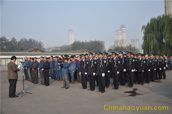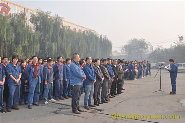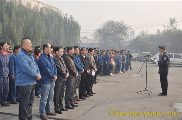 隨著雄壯的國歌聲響起,在經警隊旗手的護送下,五星紅旗冉冉升起。公司黨委副書記李繼忠作軍訓總動員講話。他說,軍訓月活動是昊源集團企業文化建設的重要組成部分,也是提高員工隊伍素質,培養全員協調一致,共同向上和展現企業員工精神風貌的重要體現。同時,軍訓也是一種學習,也是一種磨練和考驗。希望全體干部員工充分準備、以飽滿的熱情、頑強的毅力和旺盛的斗志參加軍訓,同時,他還對參加軍訓的員工提出具體要求,希望參加軍訓的員工都能以優異成績完成本次軍訓任務。