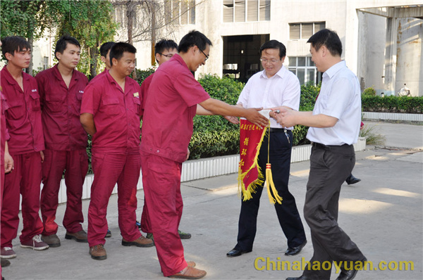 隨后,在李繼忠、田懷廣、張海生等公司領導陪同下,李亞東處長一行又深入到生產一線,為公司7月份“黨員文明崗位”獲得單位聯合車間進行授旗,并與黨員代表合影留念。