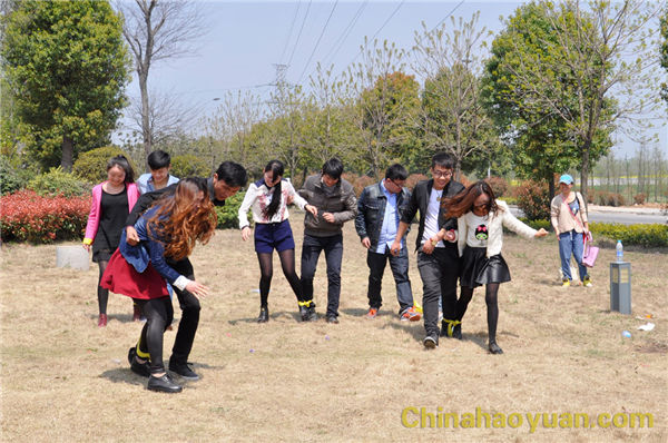 不知不覺經(jīng)過兩個小時的行駛,我們終于到達了本次活動的目的地:潁上濕地公園。望著對面一群群時尚靚麗的女孩,我們公司男生頓時興致高昂,此時,在團委書記馮婷婷的帶頭組織下,大家選取公園一角,圍坐成一圈,在相互介紹姓名和愛好后,開始了愉快的游戲時光,“昊京香”三家公司男女生互相搭配,默契的完成了一系列游戲動作。